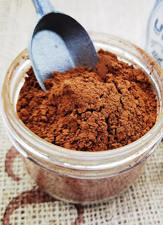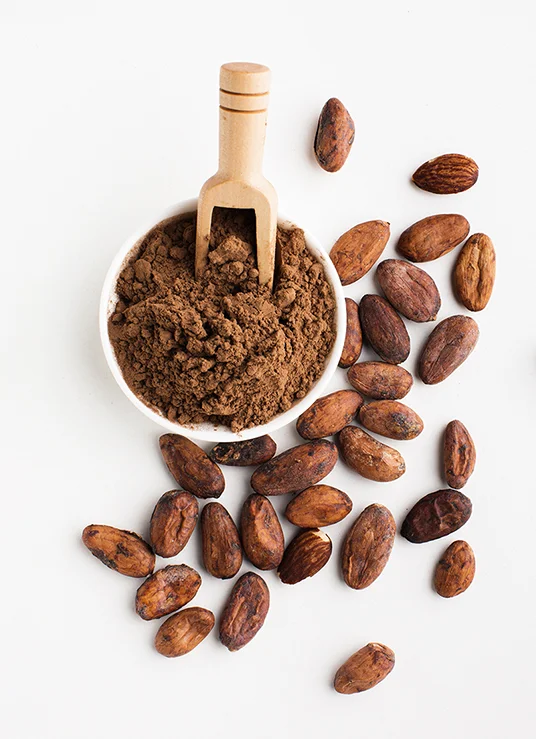 La poudre de cacao est un produit alimentaire obtenu à partir des fèves de cacao après une série d'opérations de transformation. La vraie poudre de cacao est très intéressante sur le plan nutritionnel. Elle est relativement riche en protéines (en moyenne 22 %) et très riche en fibres alimentaires (30 %). Elle se distingue parmi les aliments comme étant la meilleure source de flavanols (épicatéchine, catéchine, proanthocyanidine).