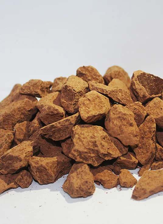 Obtenu en même temps que le beurre lors du pressage de la masse de cacao, le tourteau de cacao est essentiellement utilisé dans la chocolaterie et la biscuiterie.